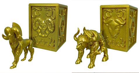 Intitulada Saint Seiya Golden Cloth Collection, cada unidade custará 500 ienes (cerca de R$ 17,00 + impostos) e virá com uma miniatura do object do signo, além da respectiva urna.
