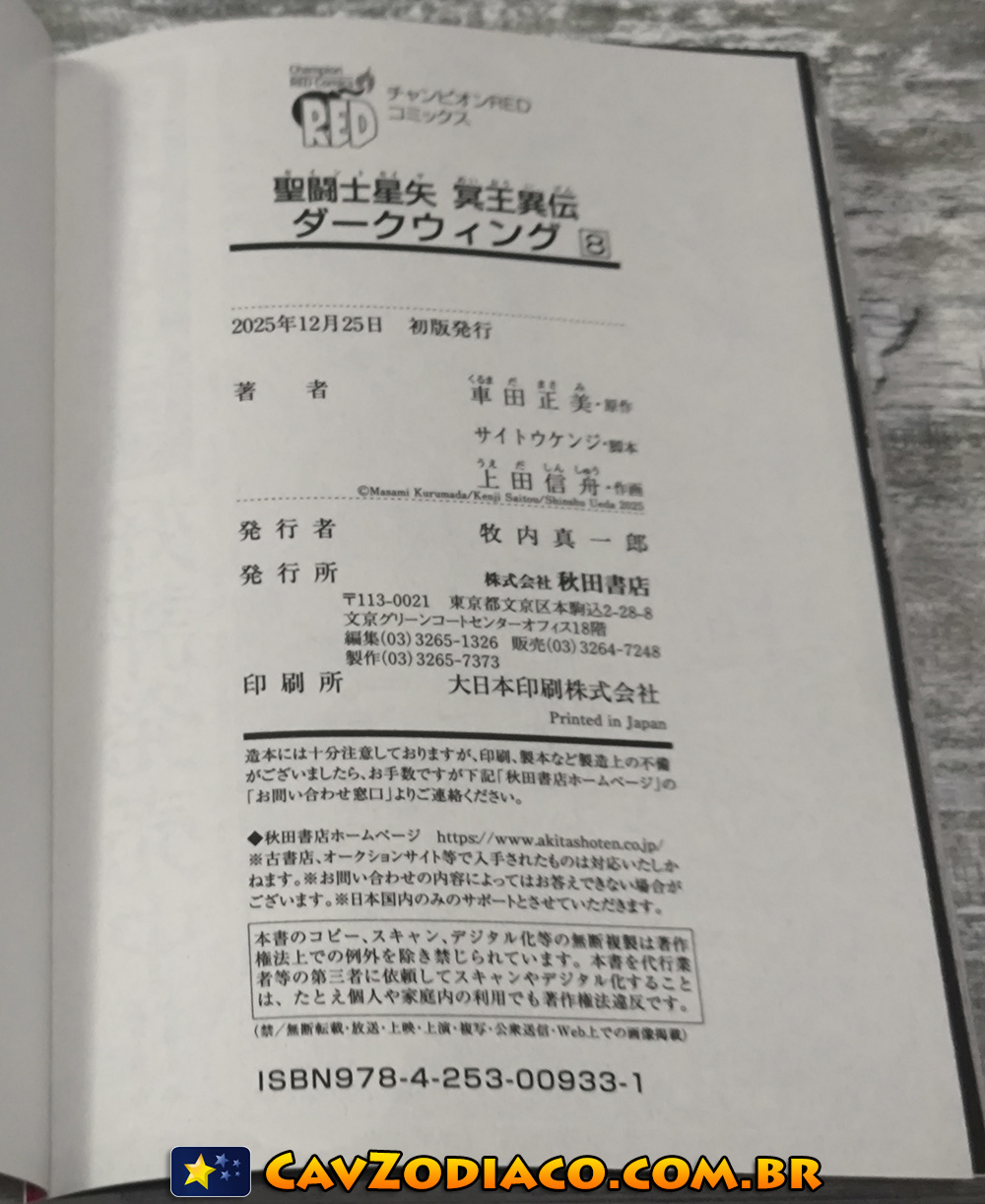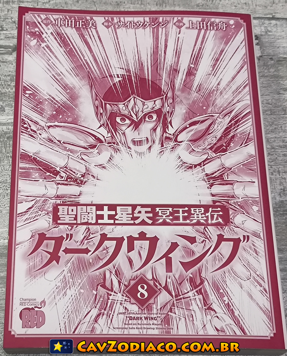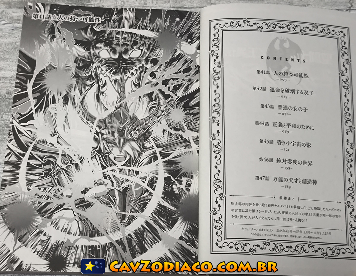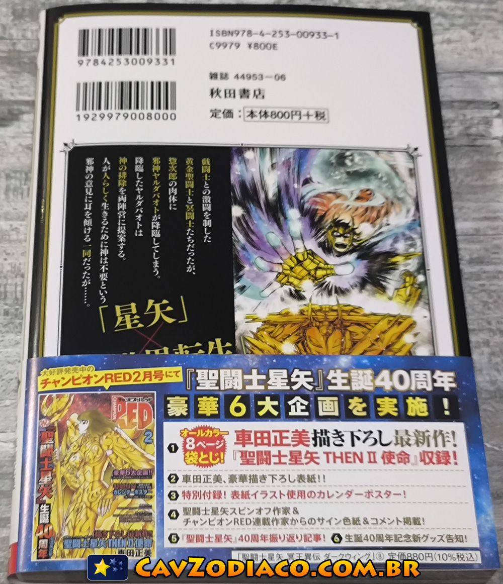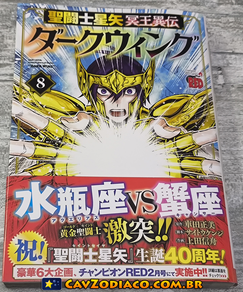 Veja fotos do oitavo volume do mangá tankobon japonês de Saint Seiya Dark Wing, spin-off dos Cavaleiros do Zodíaco, que foi lançado em dezembro de 2025 no Japão.