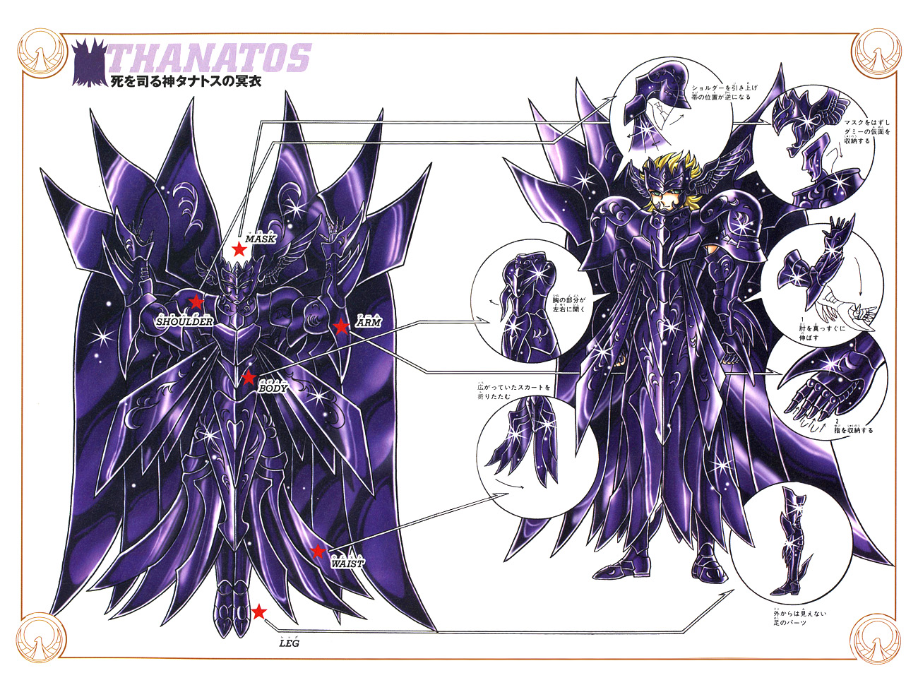 Confira as imagens dos esquemas das armaduras divinas, da Atena, dos deuses Hypnos, Thanatos e de Hades, publicadas no volume 22 (último) do Kanzenban (versão de luxo) dos Cavaleiros do Zodíaco: