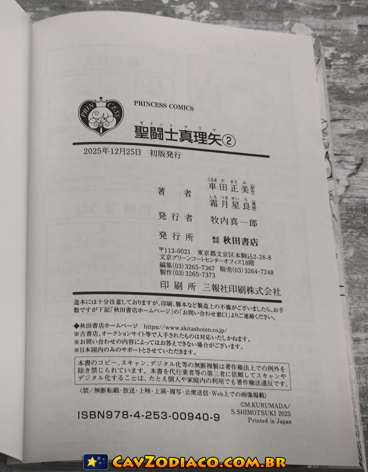 Confira fotos do segundo volume do tankobon (compilado) do mangá spin-off shoujo Saint Mariya, que foi lançado no Japão no final do ano passado.
