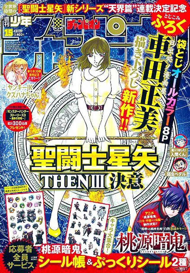 Confira a capa da revista japonesa Weekly Shonen Champion desta semana, com previsão de lançamento oficial para amanhã, que traz o terceiro capítulo de Saint Seiya THEN e o grande anúncio do início da serialização da Saga do Céu dos Cavaleiros do Zodíaco para o dia 14 de maio de 2026.