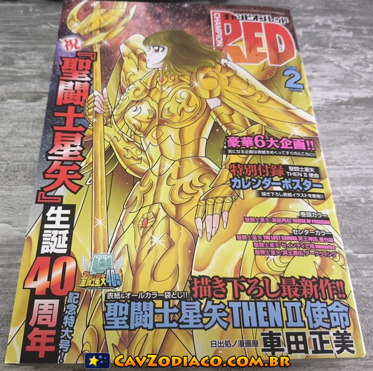 Ontem finalmente recebemos a revista japonesa Champion RED de dezembro de 2025, comemorativa pelos 40 anos de Saint Seiya.
