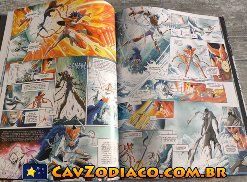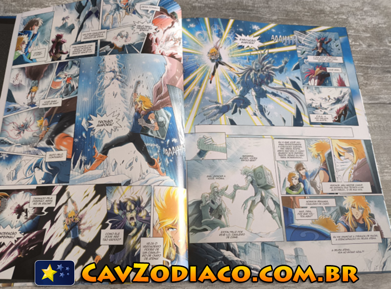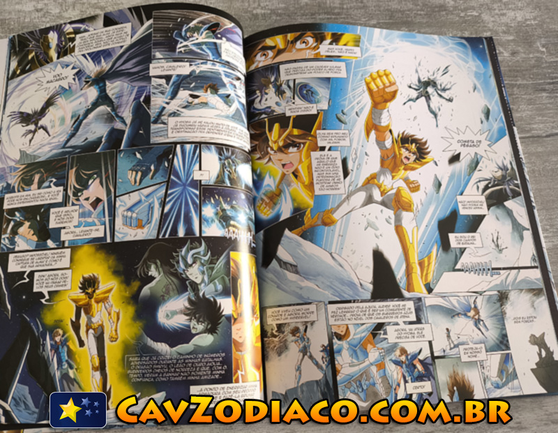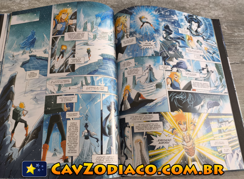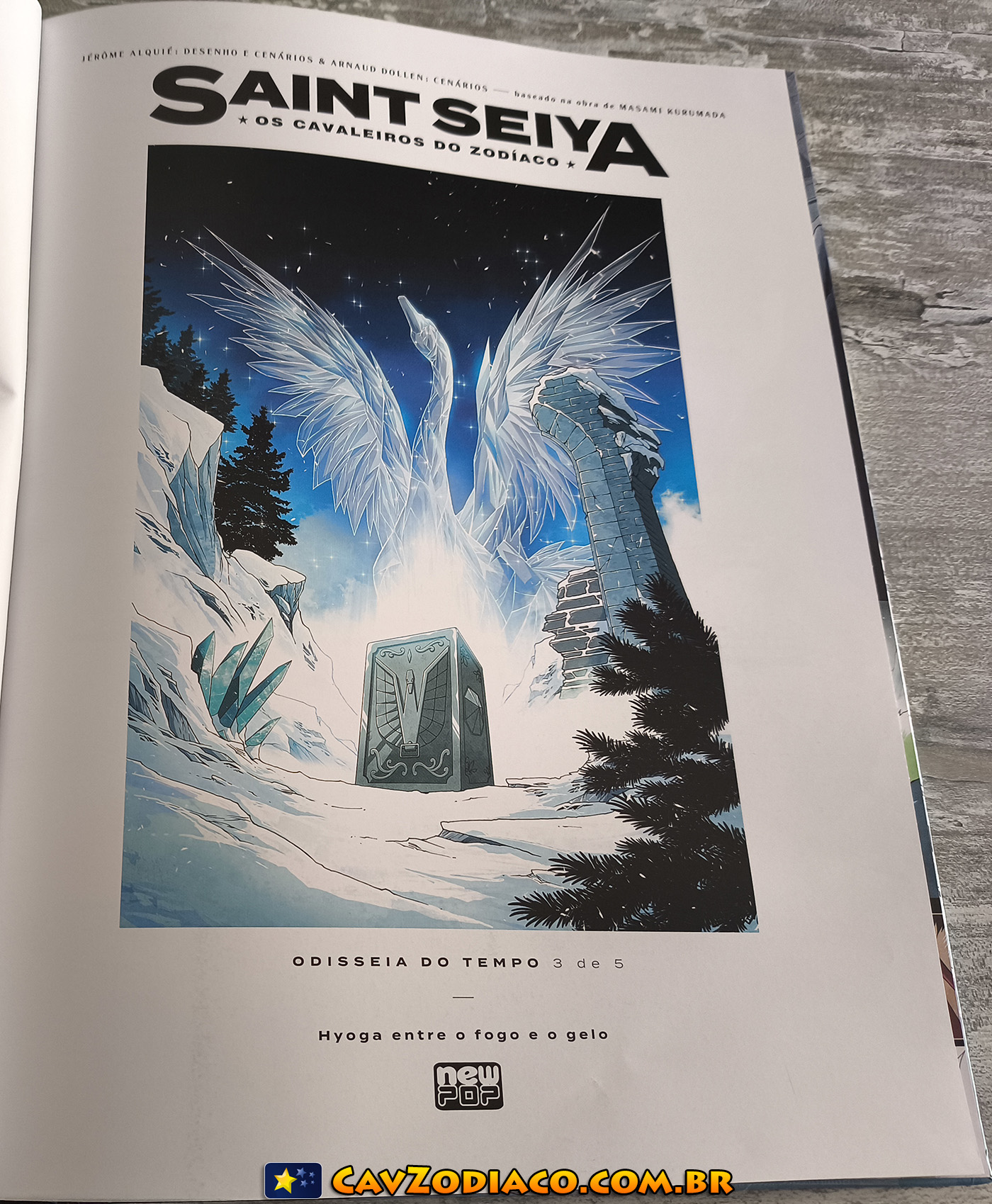 Trata-se de um lançamento da NewPOP Editora e este terceiro volume, intitulado Hyoga entre o fogo e o gelo, conta com capa dura, 64 páginas (todas coloridas), papel especial, formato 22x29cm e tiragem limitada.