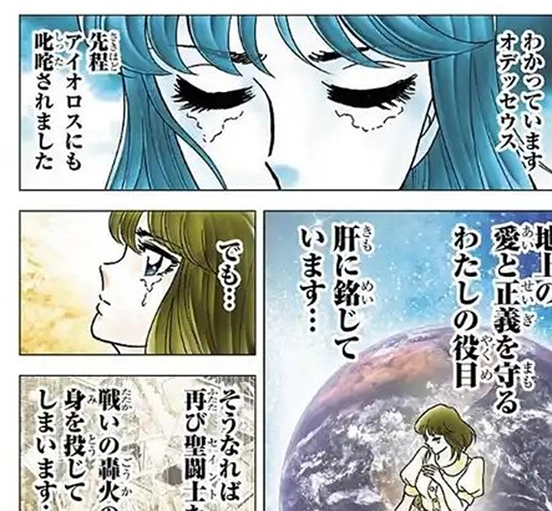 Ao chegar às ruínas da Casa de Serpentário, o 13º templo perdido na Era Mitológica, Saori descobre a Flecha da Deusa. Isso a faz lembrar do 13º Cavaleiro de Ouro, o Odisseu. Chorando com as lembranças, Saori entende que proteger o amor e a justiça na Terra é o seu dever. Entretanto, se isso acontecer, os cavaleiros se jogarão no fogo da batalha mais uma vez. Não querendo envolver os cavaleiros, Saori decide enfrentar a batalha completamente sozinha. No Reino Celestial, Apolo sente o cosmo de Saori e percebe que Atena está prestes a despertar novamente. Se isso acontecer, os deuses do Olimpo destruirão Atena e a Terra. Um presságio do que poderia acontecer é mostrado, com a Estátua de Atena sendo completamente destruída.