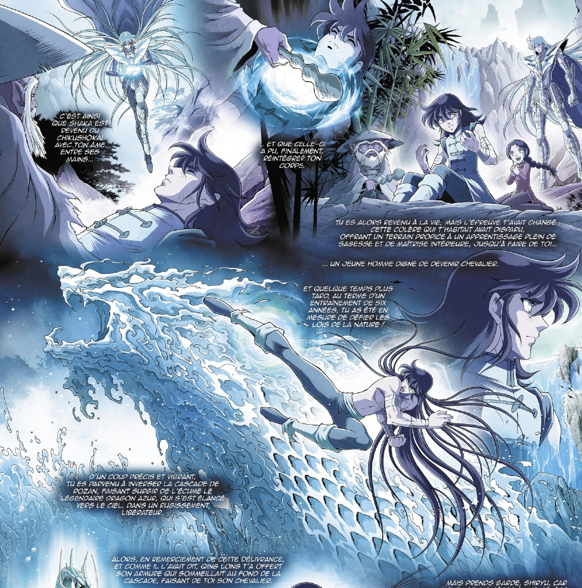 - Derrotado, Shiryu retorna aos Cinco Picos Antigos, na China. Em meditação profunda, ele recebe uma visão de seu antigo mestre, Dohko, que o guia a se conectar com a origem de seu poder, levando-o a um plano espiritual onde ele encontra Qing Long, o Lendário Dragão Azul.