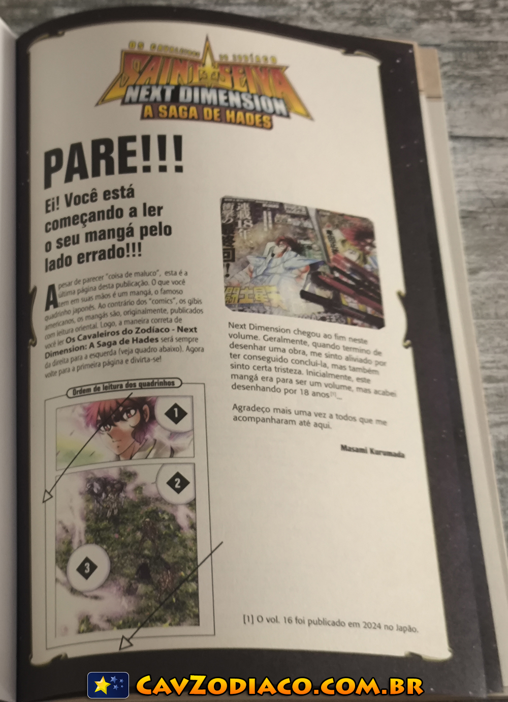O volume 16 (último) do mangá tankobon brasileiro de Next Dimension foi lancado pela Editora JBC. Ele possui 8 capítulos (do 111 ao 118) e os esquemas de montagem das armaduras dos personagens: Suikyo de Taça, Yambow de Gárgula e Tohma de Anjo (Ícaro).