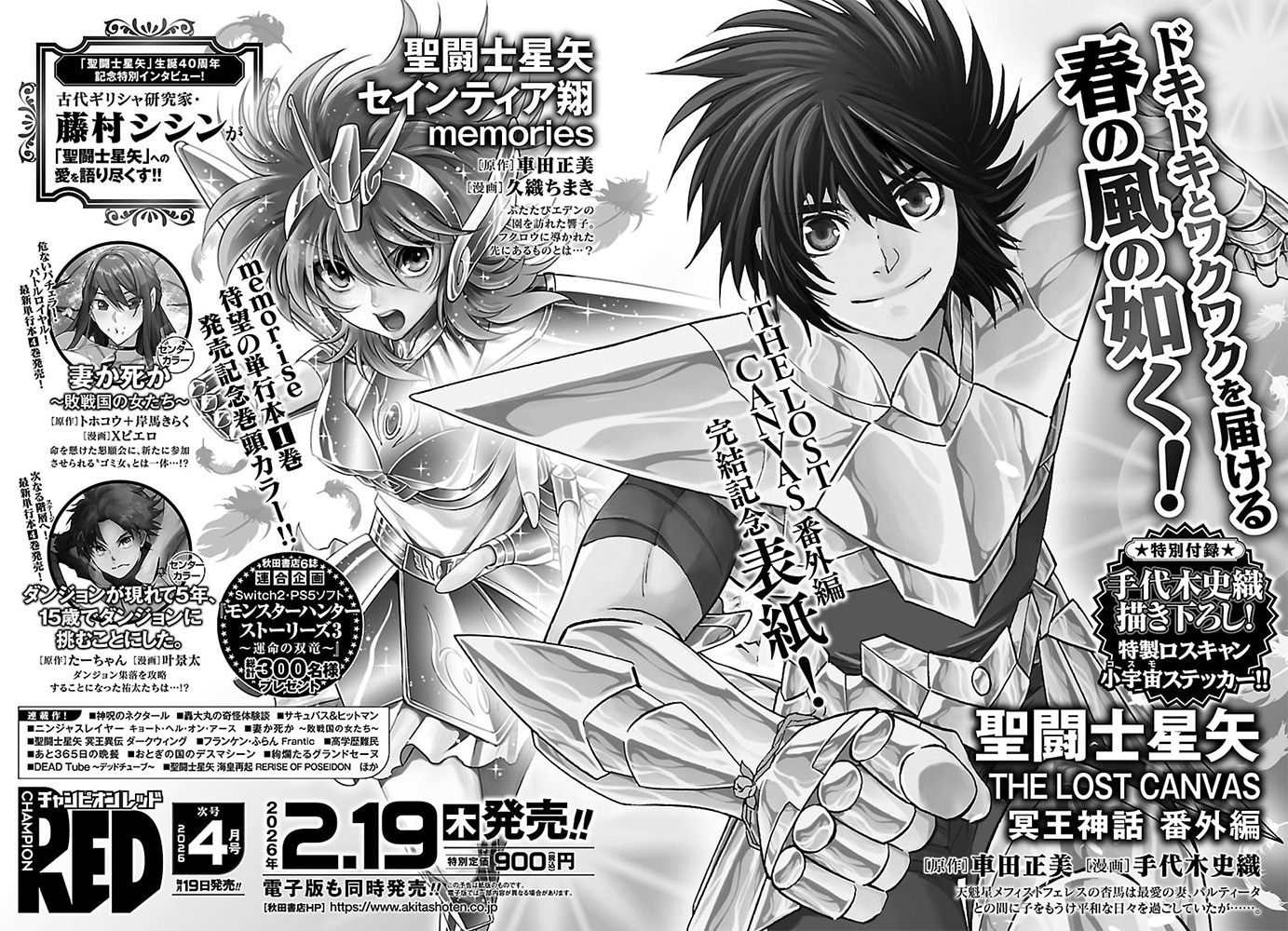 Lost Canvas voltará a ser capa da revista depois de muito tempo. De brinde, ainda teremos um adesivo especial desenhado por Shiori Teshirogi, mangaká de Lost Canvas, e a publicação de mais um capítulo especial, fechando esta "trilogia" de capítulos.