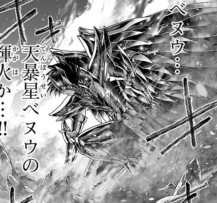 Entretanto, Kagaho de Benu aparece, sentindo que o cosmo de Hades desapareceu. Violet explica a situação, mas Kagaho rejeita a explicação, chamando tudo de uma "farsa dos deuses loucos" e afirmando que os Espectros são apenas peões que tiveram seus entes queridos roubados. Kagaho declara que não pertence ao exército de Hades, mas que serve apenas a quem ele próprio escolhe entregar seu coração.
