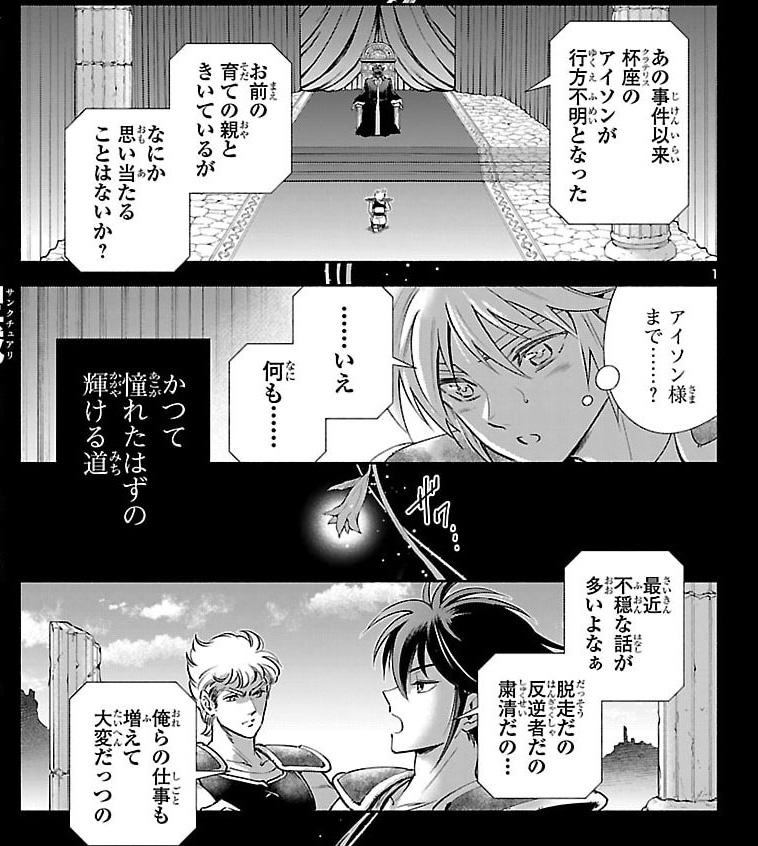 A história se passa logo após o incidente da "traição" de Aiolos e a tentativa de assassinato de Atena. O Santuário está envolto em boatos sobre rebeldes, fugas e expurgos. Nesse cenário caótico, Aison de Taça (Crateris) desapareceu.