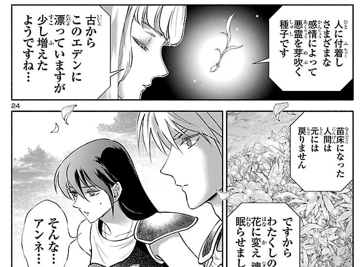 Kyoko revela que estava procurando por sua colega, Anne, e que sente que aquele lugar a chama em seus sonhos. Rigel nota que Kyoko é muito forte, pois conseguiu ocultar sua presença até estar bem perto dele. Eles encontram Anne, mas ela foi infectada por uma "Semente do Mal", que brota de emoções e transforma humanos em monstros. Um guardião do Éden aparece e, afirmando que Anne não poderia ser salva, transforma-a em uma flor para "adormecer sua alma", alertando que o local é perigoso para humanos.