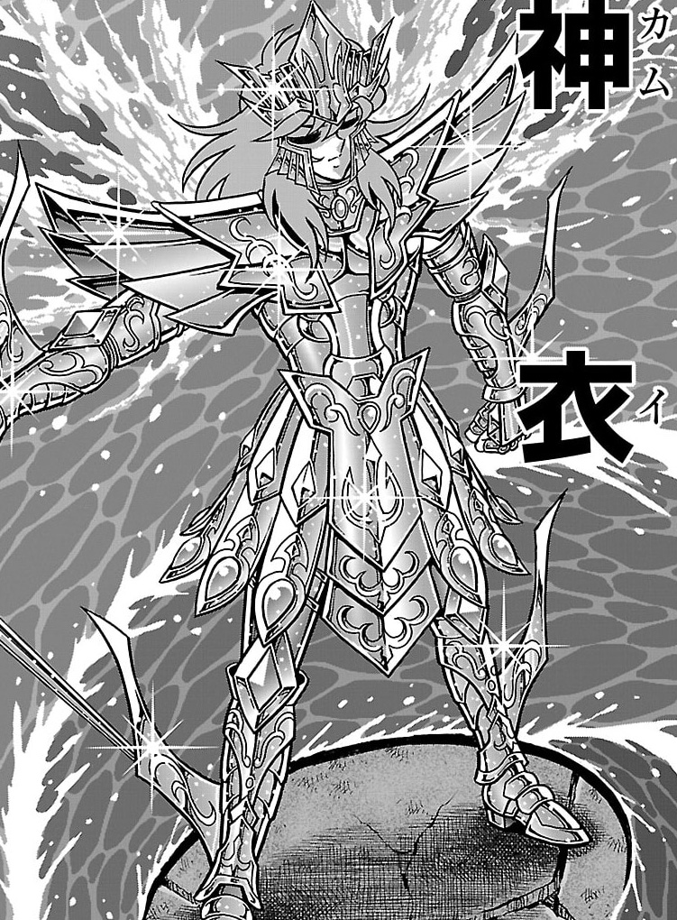Apesar da desvantagem inicial, Poseidon decide lutar a sério. Ele chama Thetis e pede seu traje. No entanto, não é a Escama comum. Graças ao cosmo doado a Terra e à vontade de seus guerreiros, a escama evolui para sua forma ancestral e verdadeira: a Escama Mitológica (Arch Scale), que na verdade é uma Kamui (Traje Divino).