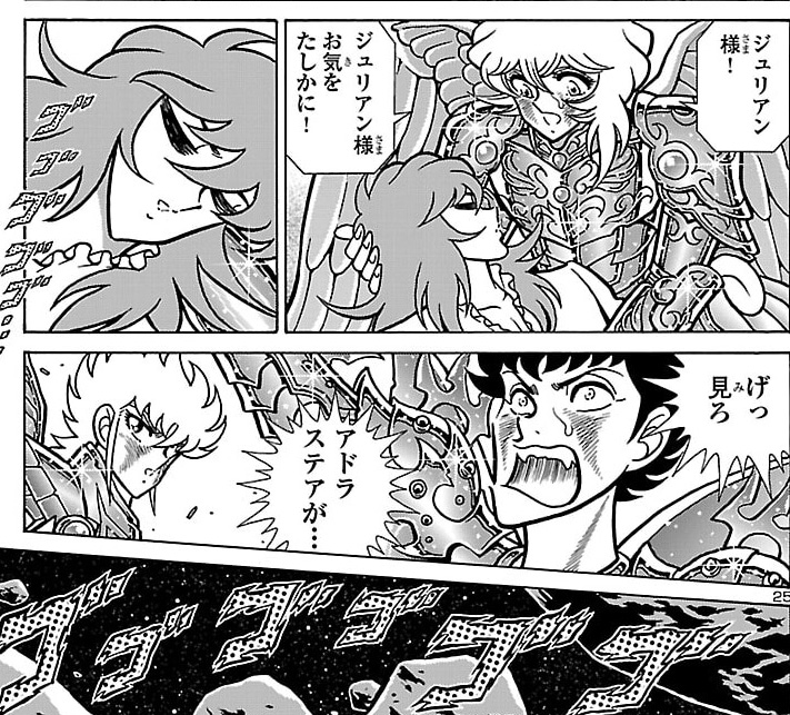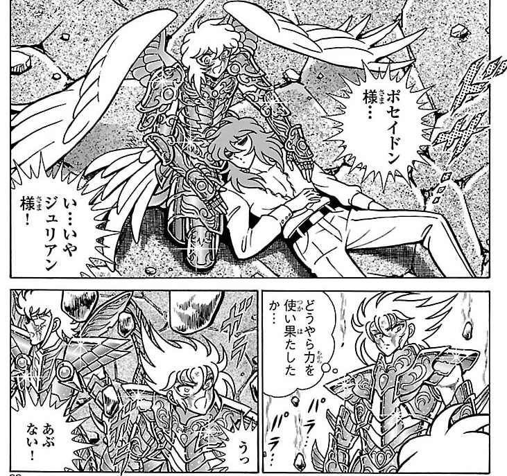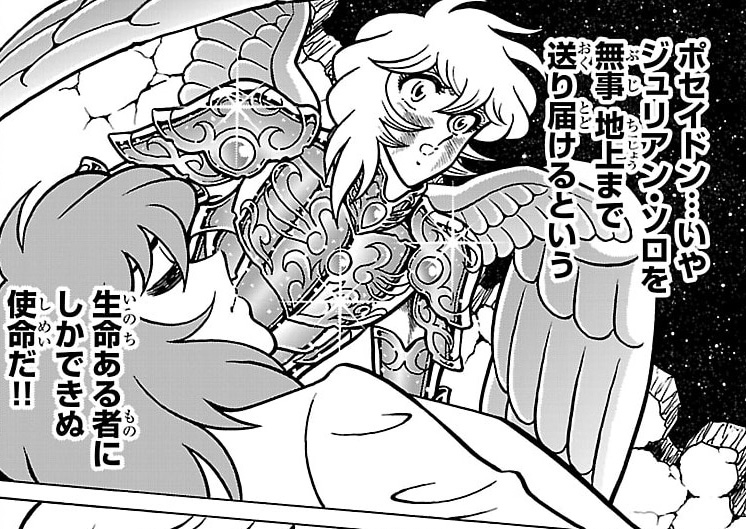 O templo começa a desmoronar e uma segunda onda massiva de meteoritos se dirige à Terra. Kanon de Dragão Marinho assume o comando. Ele percebe que Poseidon/Julian está exausto e precisa ser salvo. Kanon ordena que Sorento de Sirene leve Julian em segurança para a Terra, dizendo que é uma missão que apenas Sorento pode cumprir.
