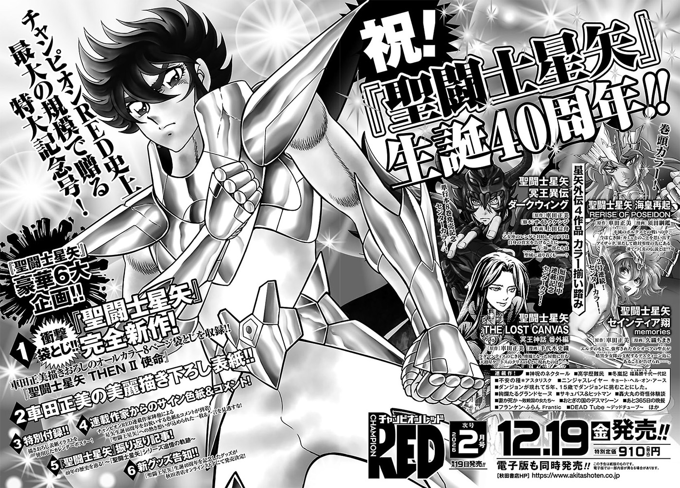 Para comemorar os 40 anos do mangá de Saint Seiya, a revista japonesa Champion RED, da Akita Shoten, de dezembro de 2025 será especial.