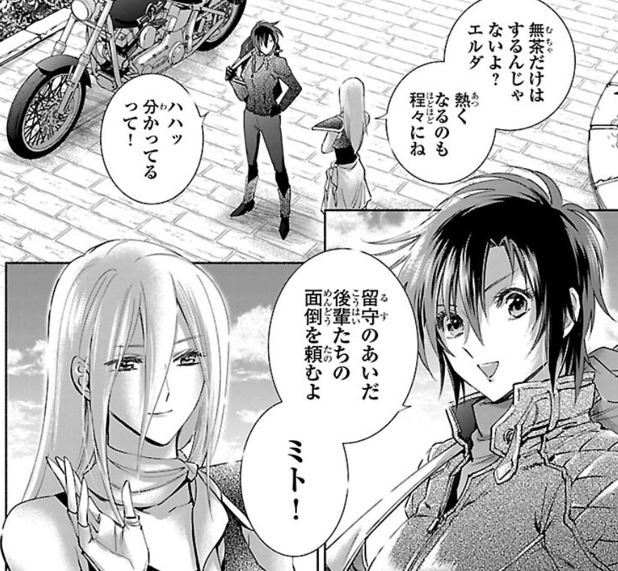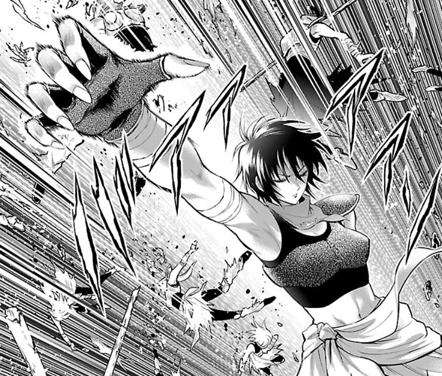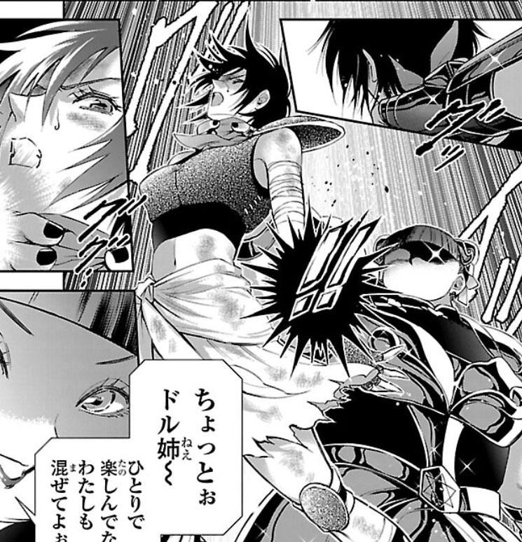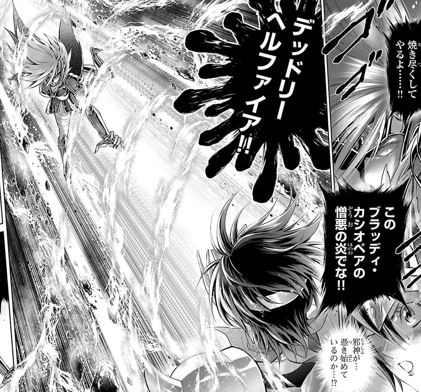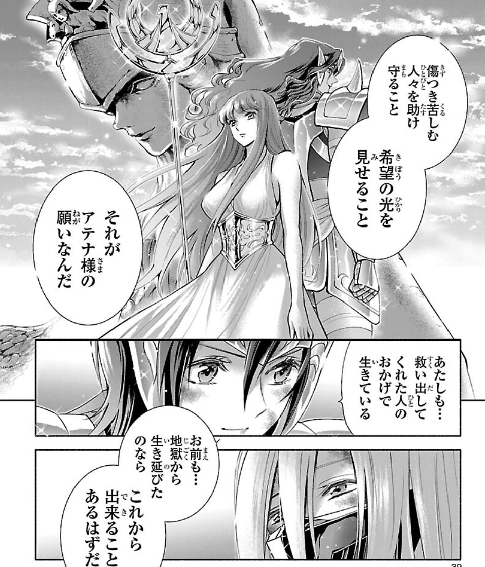 Recuperada, Elda interrompe a "festa" das Saintias Negras. A líder das irmãs desdenha dos laços de amizade de Elda e admite ter assassinado Rebecca, embora nem se lembrasse do nome dela. Enfurecida, Elda desperta seu Cosmo de justiça, derrota as irmãs com seu golpe e recupera sua armadura. Antes de partir, ela encoraja Crown a encontrar um novo propósito para sua vida. O capítulo termina com Elda retornando à Academia Sagrada.