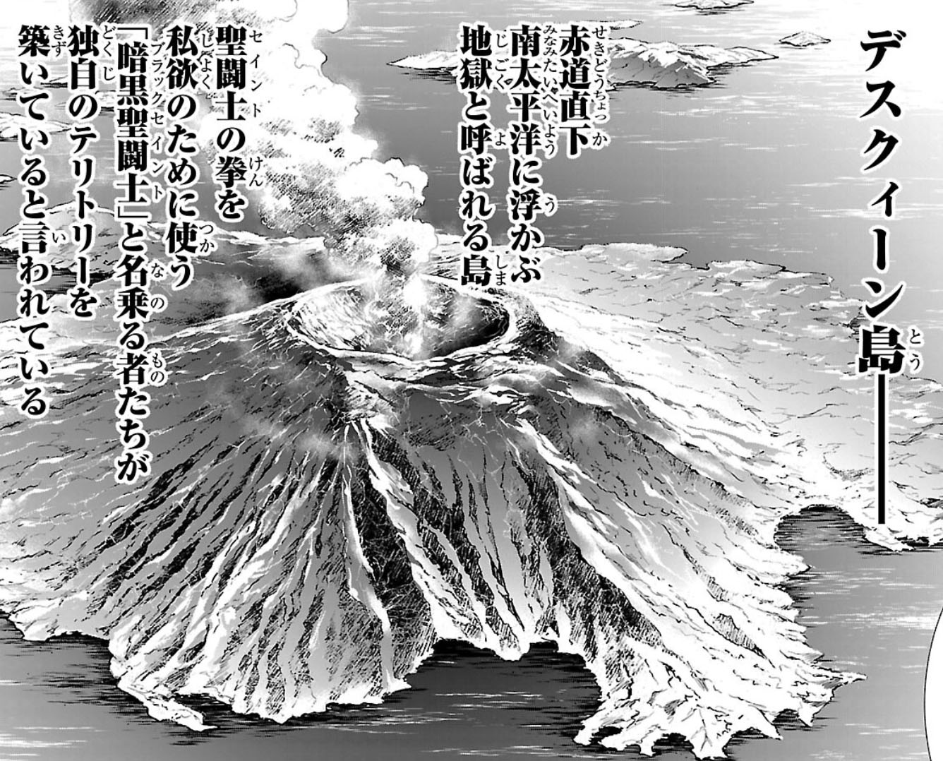 Ao chegar na ilha, Elda é confrontada pelas "Três Irmãs do Massacre", um grupo de Saintias Negras. Elda é inicialmente derrotada devido ao uso de uma neurotoxina chamada "Death Queen", presente no perfume usado pela irmã do meio, Lovely Dolphin. Enquanto está aprisionada e enfraquecida, Elda recebe a ajuda inesperada de Crown (Corona Negra), uma jovem escravizada pelas irmãs que lhe entrega um antídoto e a liberta, pedindo que Elda diga a Atena para destruir toda a ilha.