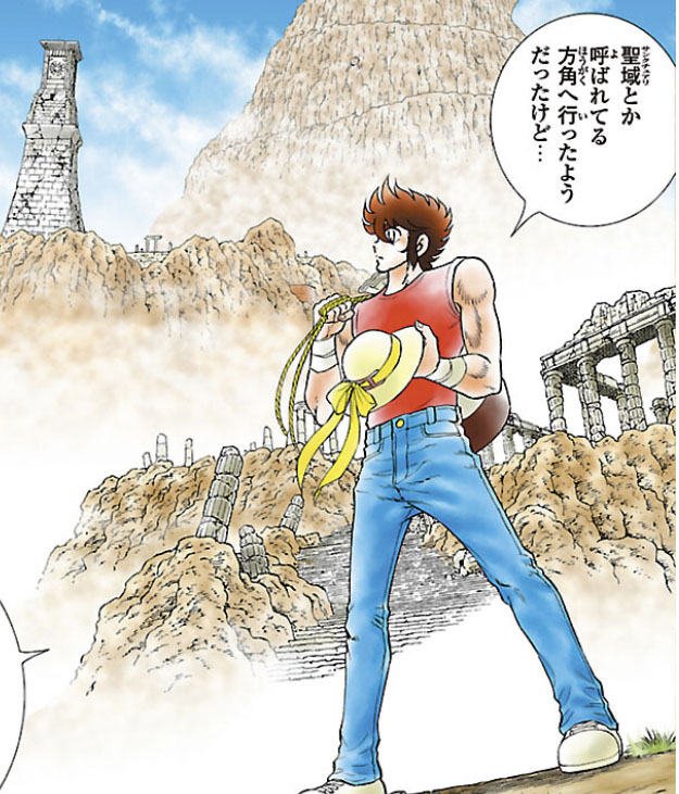 Seiya, que está sem memória, reflete sobre a garota (Saori) que passou por ele. Ele percebe que ela está indo na direção do que chamam de Santuário. Ali na Vila de Rodório, todos consideram o Santuário um lugar sagrado, proibido, que ninguém deve entrar. Ele questiona quem seria a garota.