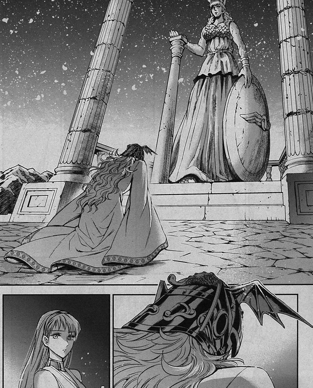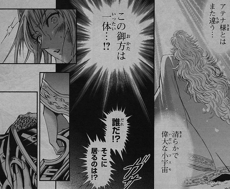 O capítulo 37 do mangá Saintia Shô foi lançado hoje no Japão. Neste capítulo temos basicamente Katya tendo uma lembrança de quando Saga se passava pelo Mestre do Santuário e de quando ele matou um dos soldados do Santuário, passagem inclusive presente no mangá original do Kurumada (bela sacada da Chimaki Kuori, que inclusive ilustrou o pôster do Saga nu, como na publicação original do Kurumada). Neste momento surge Klaus, uma espécie de ajudante do Grande Mestre (seria como o Ares utilizado no anime).