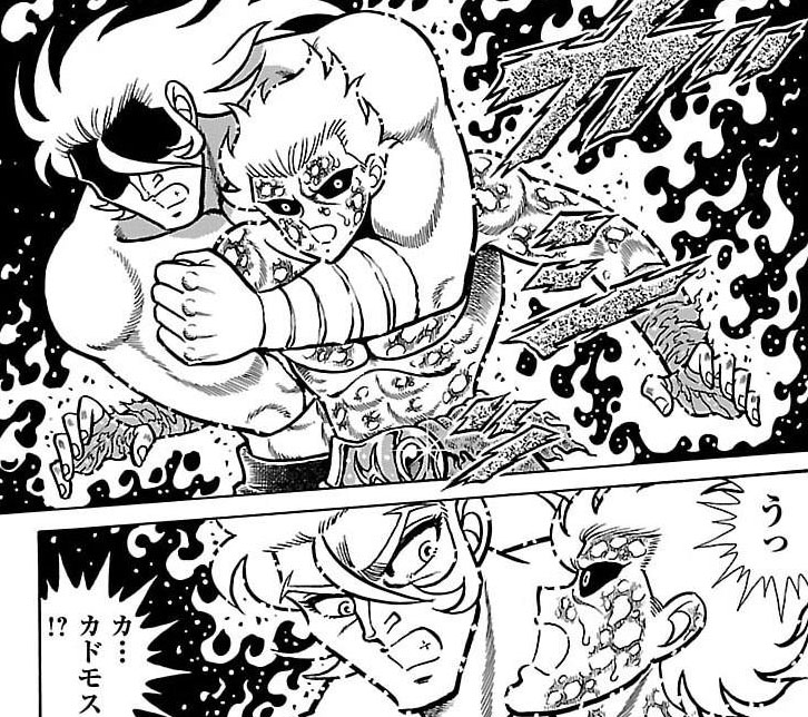 Enquanto Pólux queima e tenta levar todos consigo em um ato final de desespero, Cadmos, que estava sob o efeito do Satã Imperial, recupera sua consciência. Ele percebe que servia a Nêmesis apenas por medo e resolve se sacrificar, levando Pólux para a morte para que possa morrer como um "ser humano.