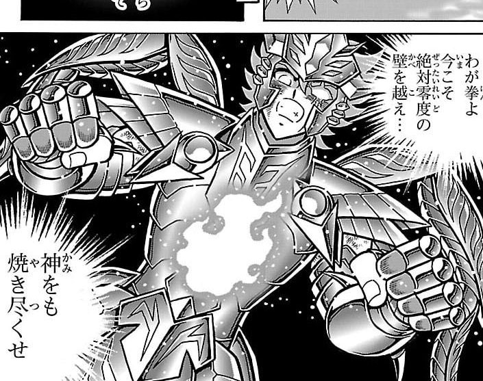 Isaak de Kraken alcança um novo patamar de poder ao despertar sua verdadeira Escama (Arc Scale). Ele relembra os ensinamentos de seu mestre, Camus de Aquário, sobre uma lenda do Santuário: a "Chama Congelante". Camus explicou que, além do Zero Absoluto, existe um estado de "temperatura negativa" onde as leis da termodinâmica se invertem, transformando o frio extremo em um calor infinito que pode queimar até o corpo de um deus. Ele lembra da história de um Cavaleiro (podemos ver a imagem do Mestre Cristal, que atingiu este poder, enfrentando um deus maligno). Isaac manifesta esse poder e utiliza o golpe Everlasting Blaze, que consome o corpo de Pólux e impede sua regeneração.