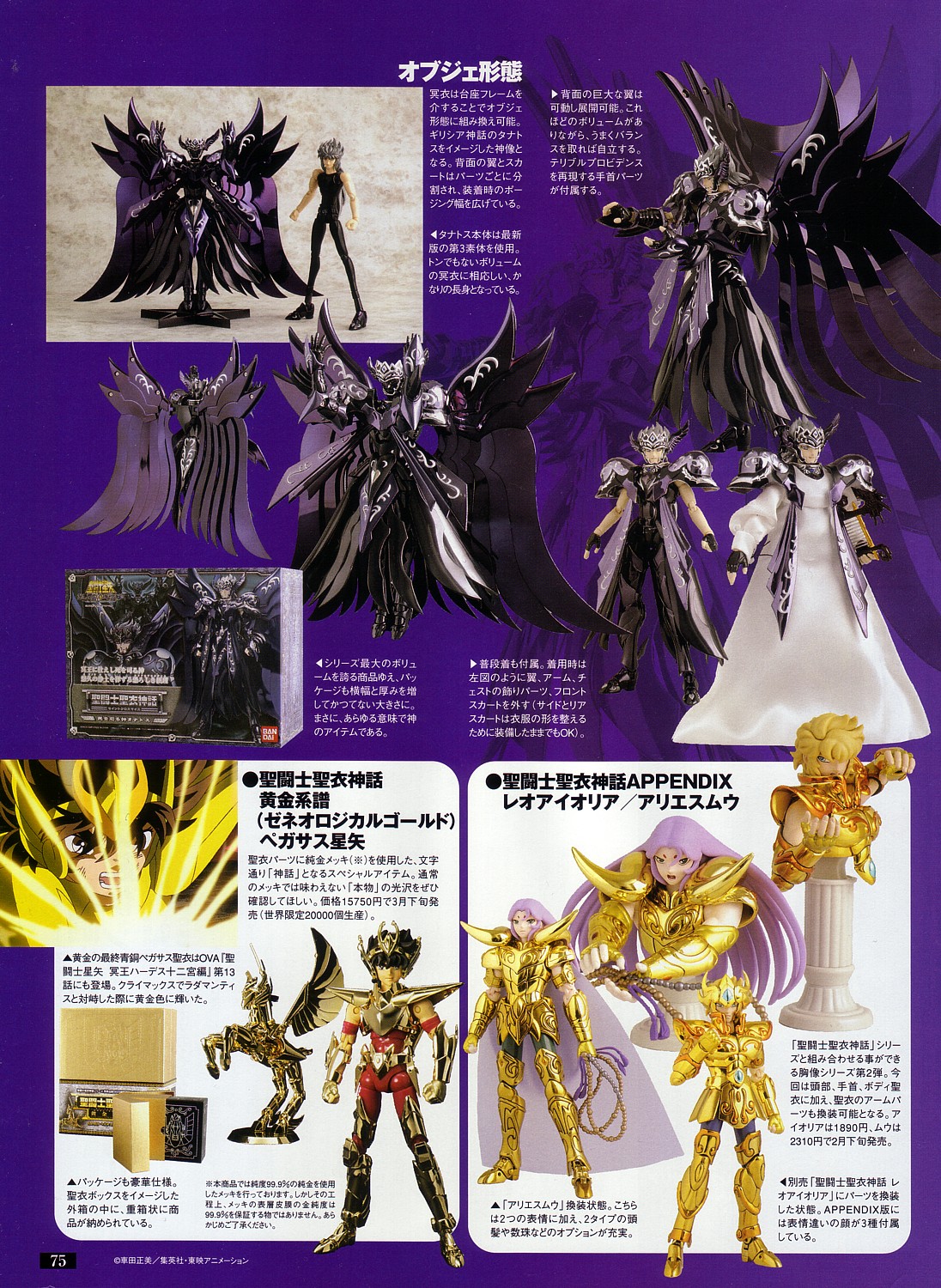 Confira algumas imagens das revistas japonesas Figure Ou e Hobby Japan deste mês, que mostram o boneco Cloth Myth do Thanatos, os novos bustos, os bonecos da linha Medicos e o Cloth Myth especial do Seiya de Pégaso com armadura de bronze reluzindo a ouro!