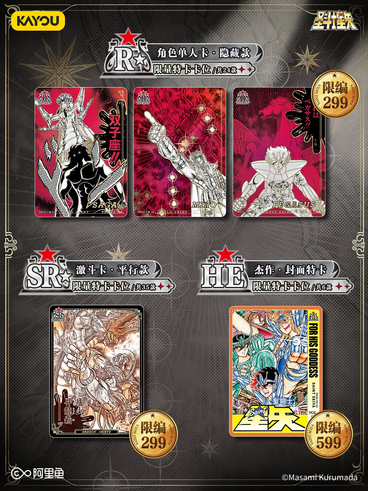 A empresa chinesa Kayou está lançando uma nova coleção de cards, desta vez com ilustrações baseadas no mangá dos Cavaleiros do Zodíaco.