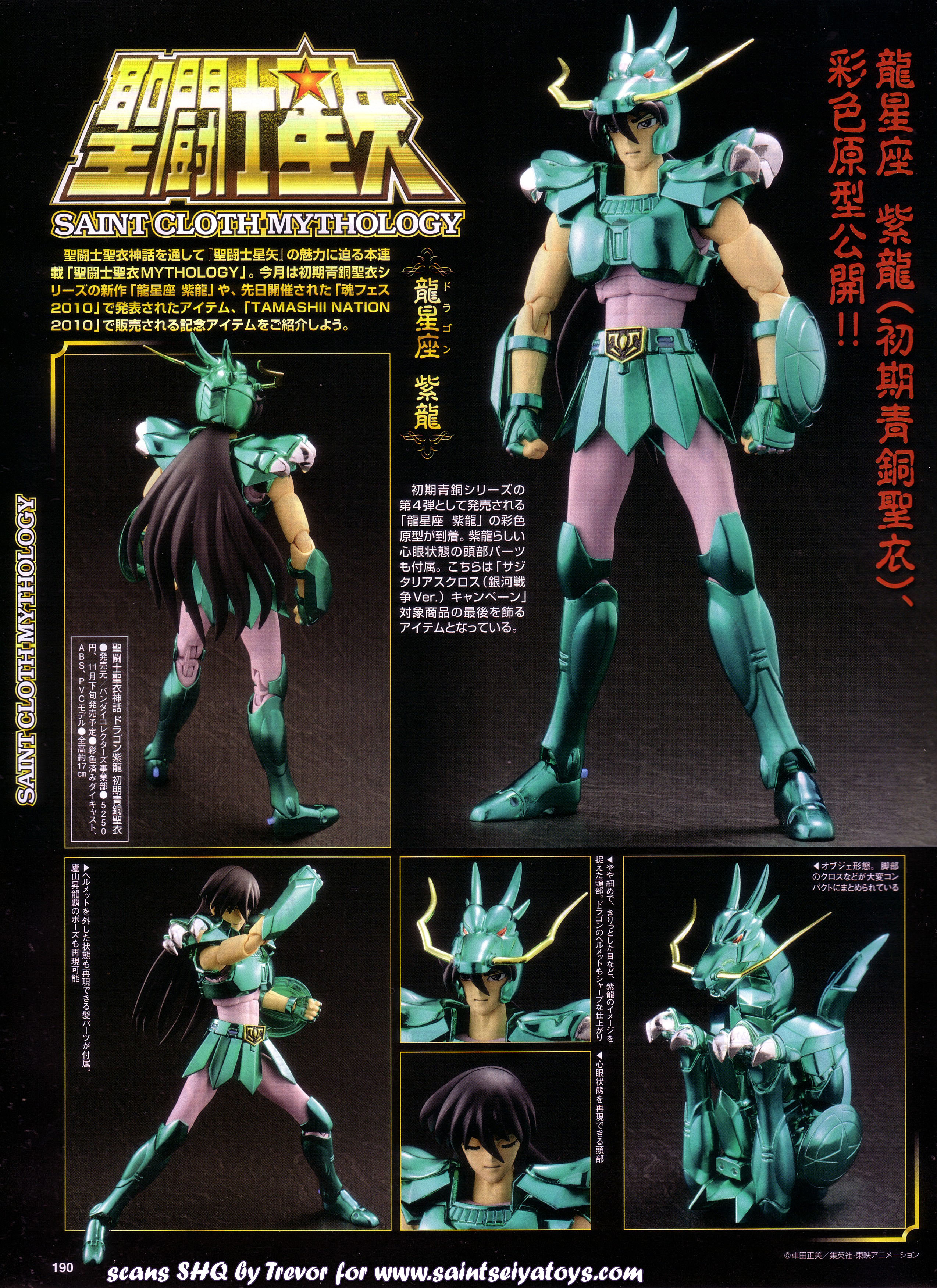 Confira imagens das revistas japonesas Figure Ou e Hobby Japan deste mês de agosto de 2010. Destaque para os bonecos Cloth Myth do Afrodite de Peixes (versão espectro, previsto para ser lançado em setembro/2010), do Shiryu de Dragão (com 1ª Armadura de Bronze, previsto para ser lançado em novembro/2010), do Ikki de Fênix (com Armadura Divina, previsto para ser lançado em dezembro/2010) e para os bonecos especiais do Hyoga de Cisne (versão Power of Gold, exclusiva da Toei Animation, previsto para ser lançado em novembro/2010), do novos bustos do Mu de Áries e do Camus de Aquário (versões OCE, com as cores do mangá, previstos para serem lançados em outubro/2010, durante o evento japonês Tamashii Nation 2010) e do Hyoga de Cisne (versão OCE, com terceira armadura de bronze, previsto também para outubro/2010 durante o Tamashii Nation 2010).