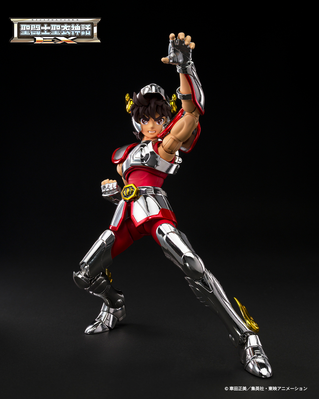 - Cloth Myth EX do Seiya de Pégaso com a primeira armadura de bronze: estrutura totalmente renovada, com proporções impressionantes e ampla articulação.