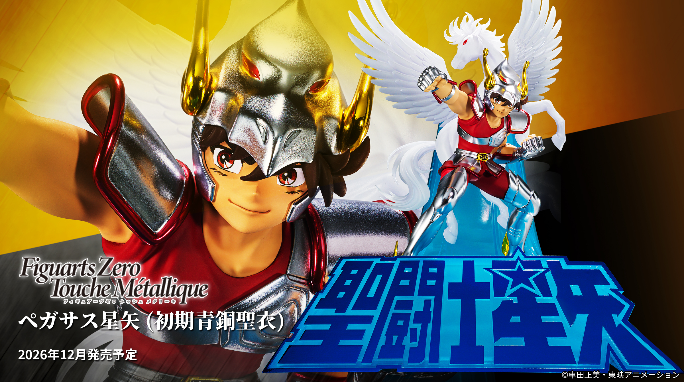 - Figuarts Zero Touche Métallique do Seiya de Pégaso com a primeira armadura de bronze: design inspirado na abertura do anime! Reproduzido com duas texturas: metalizado e pintado. Pré-venda nas lojas a partir de 28 de abril, com lançamento previsto para dezembro de 2026.
